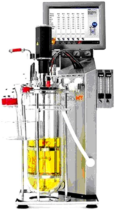 實(shí)驗(yàn)裝置選用實(shí)驗(yàn)室臺(tái)式旗艦型小型厭氧發(fā)酵罐反應(yīng)器,如圖 1所示。該反應(yīng)器由瑞士制造,INFORS品牌,型號(hào)Labfors 5 Bacteria,總?cè)莘e為3.6 L,有效容積為2.6 L。攪拌速率設(shè)置為150 r/min,在線監(jiān)測(cè)pH和ORP。控制裝置運(yùn)行溫度為33 ℃,遮光放置,避免光線對(duì)微生物的負(fù)面影響。