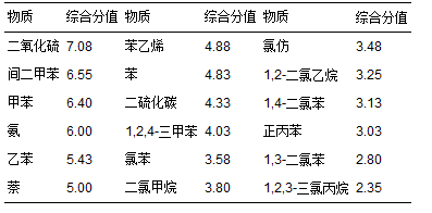 表 1 主要惡臭污染物篩選指標(biāo)評(píng)分