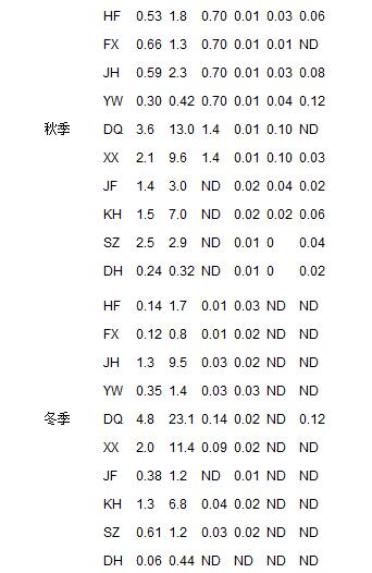 ?表 2 不同季節(jié)采樣組10家豬場沼液抗生素含量的變化情況 1)