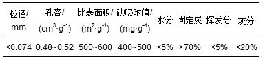表2 粉末活性焦的主要參數
