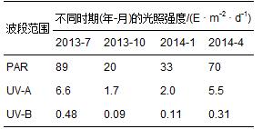 表1 表層水體各波段光照強度