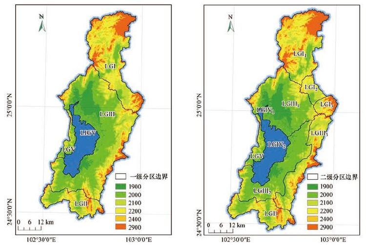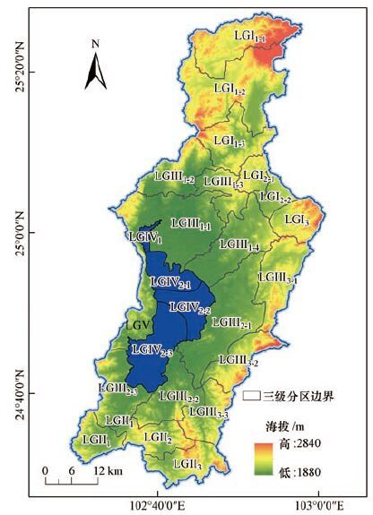 圖1 滇池流域水生態功能一級與二級分區圖