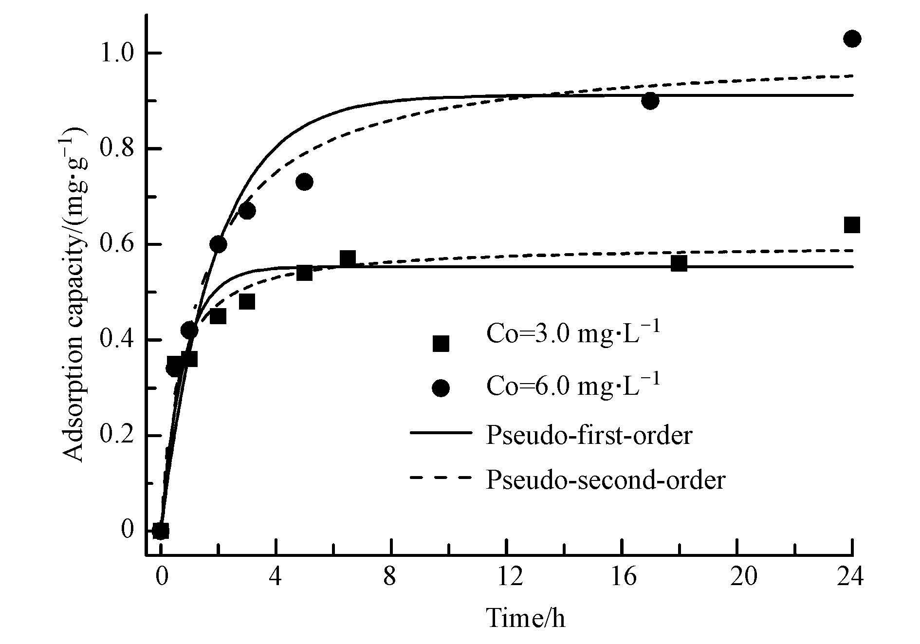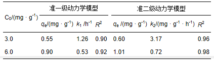 式中,qt和qe分別為t時刻和平衡態(tài)時的吸附量(mg · g-1),k1為準一級吸附速率常數(shù)(h-1),k2為準二級吸附速率常數(shù)(g · mg-1 · h-1).