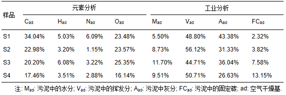 表2 污泥樣品的工業分析和元素分析