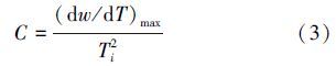 在燃料燃燒過程中,揮發分的析出直接影響燃燒的著火溫度. 文中采用揮發分釋放特性指數D(陳建原和孫學信,1987)對試樣燃燒揮發分析出情況進行描述: