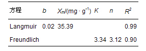 式中,Xe為平衡吸附量(mg · g-1);Xm為飽和吸附量(mg · g-1);Ce為平衡濃度(mg · L-1);b為與結合能力有關的常數;K和n為Freundlich指數,K值反映基質吸附能力,n反映基質的吸附強度.