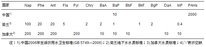 表2 多環芳烴水質標準