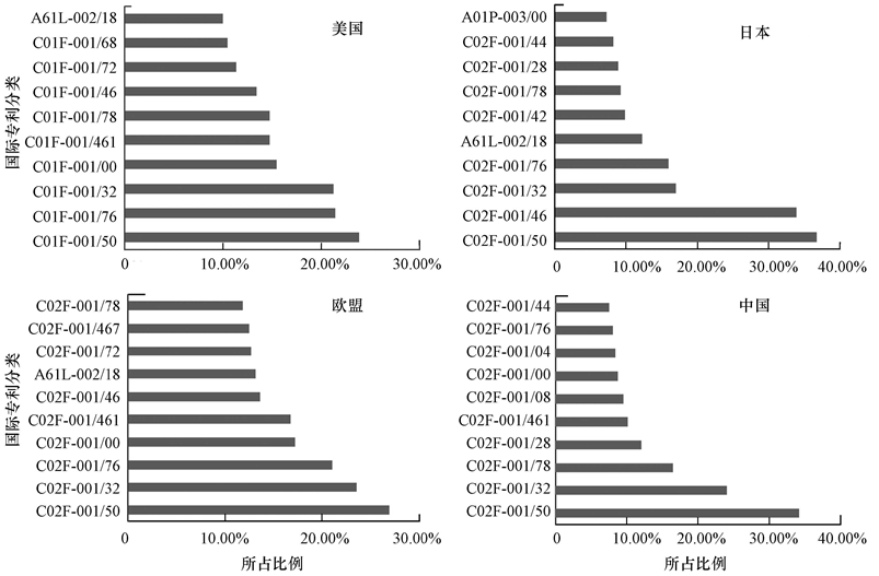 圖7 2000—2012年領先國家飲用水消毒技術熱點專利分類