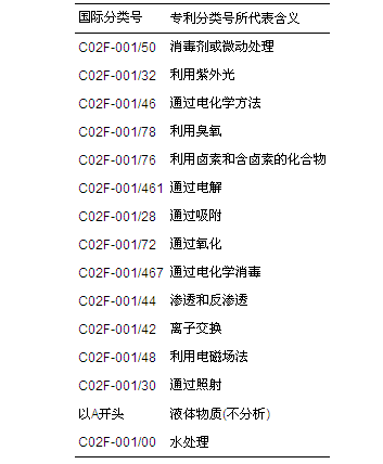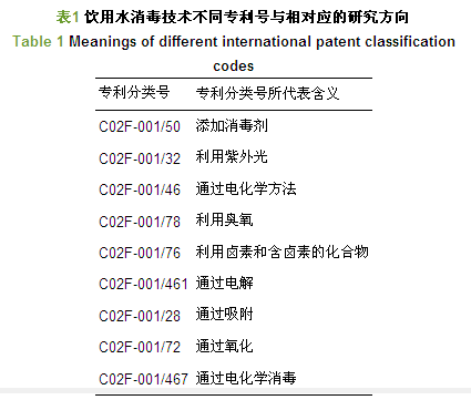 表3 飲用水消毒技術不同專利號與相對應的研究方向