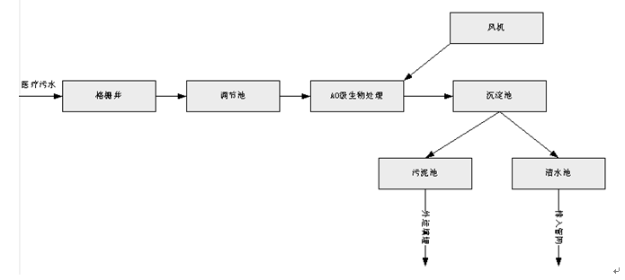 采用生物接觸氧化+沉淀+消毒工藝,即A/O工藝處理。A/O工藝的功能是硝化與反硝化作用。其原理是通過硝化與反硝化菌作用,把污水中氨氮轉換成亞硝態氮、硝態氮,再通過反硝化菌作用把硝態氮轉換成氮氣,從污水中脫氮。設計要點是注重污水、污泥的殺菌消毒方式。主要是滅菌消毒。