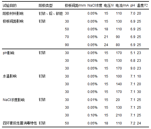 表2 電化學(xué)消毒試驗(yàn)條件