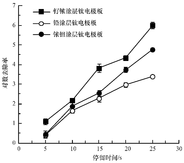 圖1 陽(yáng)極電極板材料對(duì)大腸桿菌滅活效果的影響
