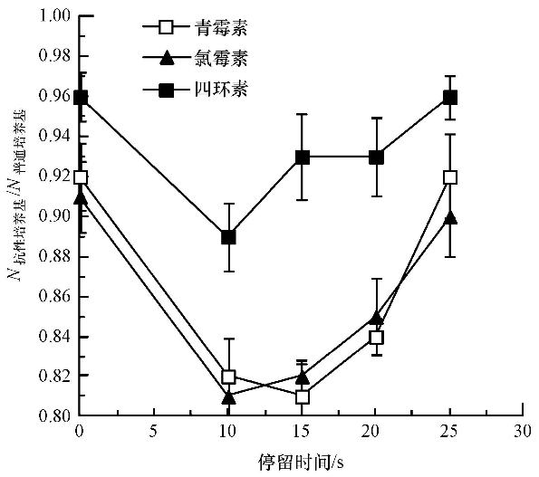 為了表征四環(huán)素抗性菌的抗性變化,用含一定濃度抗生素(青霉素、氯霉素和四環(huán)素的濃度分別為16、32、16 mg · L-1)的營(yíng)養(yǎng)瓊脂培養(yǎng)基測(cè)定四環(huán)素抗性菌濃度,用所得結(jié)果與普通培養(yǎng)基測(cè)定結(jié)果之比(N抗性培養(yǎng)基/N普通培養(yǎng)基)表示四環(huán)素抗性菌抗性.該比值越高,表示抗性越強(qiáng).
