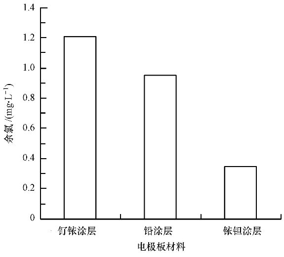 圖2 不同陽(yáng)極電極板材料產(chǎn)生余氯對(duì)比