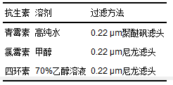 表1 抗生素儲(chǔ)備液的配制濃度及方法
