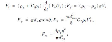 氣泡在連續曝氣情況下的受到的力平衡公式如下式(1)所示: