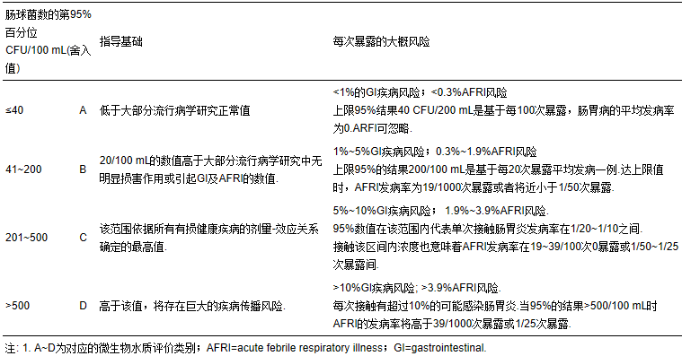 表 3 美國地表水標準中細菌指示物的濃度限值1(USEPA,1986)