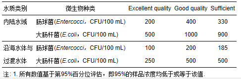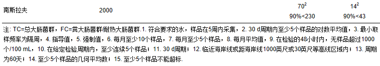 表 3 美國地表水標準中細菌指示物的濃度限值1(USEPA,1986)